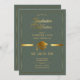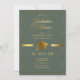Este anúncio de graduação moderado é um sofisticado design com elegantes sotaques de caligrafia e de ouro. Este convite para comemoração não tem foto para um olhar clássico e minimalista em ouro sobre um fundo sutil, com padrão de waffle de verde sábio. Adicione os detalhes do evento facilmente usando o modelo fornecido. Procure ID834 para ver outras opções de cor para este design.