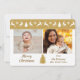 Duas das suas fotografias de família favoritas ocupam o palco central neste cartão de Natal plano, com uma rena de ouro e branca e uma borda de árvore de Natal no topo. Corresponder o texto dourado no fundo dá a sua saudação e assinatura em campos de texto personalizados, que são separados por uma silhueta dourada árvore de Natal. A parte traseira da placa é ouro mais leve e sólido.