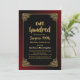 Convite de aniversário preto surpresa 100º com um quadro de ouro ornamentado com uma borda externa vermelha ombre para completar o design, criando um convite vibrante para sua ocasião especial.
