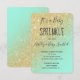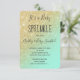 Um moderno, original e simples brilho dourado ombre É um convite de chá de fraldas de borrifar para bebês num fundo verde de menta totalmente personalizável