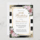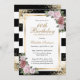 Convite de aniversário floral, preto e dourado, elegante, com flores rosas e cor-de-rosa pinceladas e verde que enquadra os detalhes da festa de aniversário contra um fundo preto e branco adornado com um confete dourado. Enche o convite de aniversário floral. Concurso de aniversário de Blush e ouro. Convite de aniversário rosa e dourado. Convite de aniversário rosa. Convite de aniversário em preto e ouro. Convite de aniversário preto e branco. Personalize facilmente esta modelo a qualquer festa de aniversário.