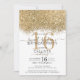 Convites Dourado brilho branco moderno, Confetti Sweet 16