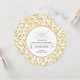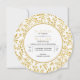 Dourado brilho deixa um convite circular de casamento. Este belo e moderno convite mostra um padrão de folhas de brilho dourado e a sua redação numa forma redonda branca.