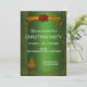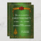 Um elegante convite de festas de Natal verde e ouro com uma faixa de ouro com poinsettia vermelha sazonal e uma árvore de Natal dourada sobre fundo verde, todos com brilho dourado. O verso da placa apresenta o buquê de poinsettia vermelho. (Notas do Designer: observe que este convite pode ser completamente personalizado para qualquer tipo de festa temática de Natal que você desejar, incluindo convites para festas de aniversário de Natal, convites de casamento de Natal e muito mais).