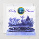 Carruagem azul antiga de cisnes com concha e Netuno .Elegante, elegante, design de vintage único para chá de fraldas inspirado no Renascimento com um brilhante monograma de pedra gema 3D.Você pode personalizar com suas iniciais e colocar seu próprio texto.