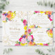 Prepare-se para deslumbrar o seu casamento com o nosso convite chique e vibrante! Nosso design apresenta cores primavera/verão arrojadas e vibrantes, incluindo padrões florais de cor d'água amarela, rosa e roxa, acentuados com tipografia de confetti com brilho dourado para um toque extra de brilho. Flores boêmicas pintadas à mão e ramos de folha de cor-de-água esverdeados se juntam com uma impressionante estrutura geométrica de terrário dourado, acrescentando um toque de elegância à sua celebração. Além disso, personalize-o com a sua própria foto atrás para um toque especial.