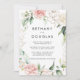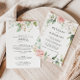 Esta blusa verde-ouro para trás e o convite formal para o casamento é perfeito para um casamento moderno. O design apresenta uma folhagem botânica, pintada à mão, verde e dourada, com flores cor-de-rosa, pinceladas, brancas, enfeitando uma elegante estrutura geométrica. Salve o papel, incluindo mais detalhes na parte traseira do convite em vez de em uma placa de gabinete separada.