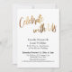 Para o cabeçalho destes cartões em negrito, usei uma fonte manuscrita casual e moderna para criar uma sobreposição de tipografia gráfica que diz "Celebre Conosco". Esta imagem foi adornada com um efeito de folha de ouro falso liso para uma atmosfera comemorativa. Preencha os espaços em branco do modelo com seus detalhes para personalizar o design. Todas as camadas permaneceram desbloqueadas para que você também possa clicar para personalizar ainda mais e reposicionar o texto ou até mesmo alterar tamanhos ou fontes. A parte de trás do cartão foi coberta com uma imagem festiva de preto em negrito com explosões de luz bokeh quentes cintilantes. Outros cartões estão disponíveis na série que têm diferentes frases de cabeçalho em dourado. Por favor, não hesite em entrar em contato para obter assistência com a personalização.
