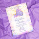Dragão roxo e rosa adorável para bebês dormindo pacificamente cercado por estrelas douradas e brilhantes neste belo convite de chá de fraldas personalizável. Excelente para um chá de fraldas temático dragão ou chá de fraldas temático de fantasia para uma menina. Este convite de chá de fraldas personalizado pode ser personalizado e todo o texto pode ser editado! Esta ilustração do dragão foi desenhada à mão e é doce e giro.