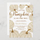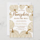 Um pouco de abóbora está a caminho! Celebre sua chá de fraldas no outono deste outono com esta bonitinha mão pintada de abóboras de água-coloração dourada e elegante tipografia caligráfica moderna sobre um fundo branco editável.