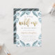 Celebre seu garotinho no caminho com estes doces convites para o chá de bebê. Apresentando penas de aquarela em azul definindo seus detalhes do chá de fraldas. "Wild One" aparece em um roteiro escrito à mão em folha de ouro falso. Reverter para faixas pintadas à mão no dorso nas mesmas cores, contra um fundo de cinza escuro. Perfeito para comemorações tribais.