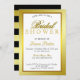 Um clássico chá de panela listrado de ouro com texto personalizado de forma decorativa apresentado para parecer elegante. design de metal Dourado com uma maca de ouro escura com aspecto elegante.