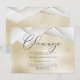 Facetas geométricas emolduradas em ouro branco perlado - em cima de uma textura de vidro fosco opalescente dourado champanhe é ultra moderno e chique. "Mudança" em caligrafia elegante - Se você já enviou os convites e teve que inesperadamente adiar a data do seu grande evento, envie-os aos seus convidados. Design Original por ©WhimsicalArtwork™tric