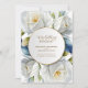Convite de casamento elegante com uma estrutura de círculo de ouro luxuoso e rosas brancas de cor aquática impressionantes fundo floral. A combinação de sotaques dourados e flores artísticas cria uma aparência sofisticada e eterno, perfeita para casamentos formais, comemorações modernas ou eventos românticos. Personalize facilmente com seus nomes, data do casamento, local e detalhes de RSVP para criar uma primeira impressão memorável para seus convidados.