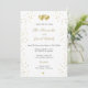 Dourado Confetti Hearts Invitation. Convide a família e os amigos para o seu dia especial com este Cartão de Casamento elegante, desenhado com corações dourados e sotaques de confete num fundo branco. O texto inclui: Os Nomes dos Cheios da Noiva e da Noite, a Data de Casamento, a Hora, a Localização e a Recepção na frente. O reverso é decorado com corações de confete de cor dourada num fundo branco. Para personalizar, basta inserir seus detalhes em nosso modelo fácil, substituindo o texto de exemplo.