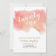 Coral cor-de-rosa e salpicante dourado com a idade anotada. Este convite foi concebido para uma idade de duas partes (21, 29, etc.) Se tiver uma idade de uma peça (ou seja, cinquenta, trinta, etc.), por favor veja o link da coleção onde tenho um convite para uma parte da idade.
