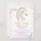 Dourado Cor-de-Rosa Quatro Eterna Magical 4th Birthday Invitation Girl's quarto aniversário unicórnio com um unicórnio, bandeira de bunting, estrelas douradas falsas e estrelas arco-íris. Este convite de quatro unicórnios mágicos para o 4º aniversário é ideal para a festa de aniversário de um unicórnio de quarto aniversário de uma menina.