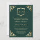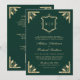 Convites Dourado Crest Monograma QR Code Emerald Green Casa