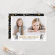 Estes cartões de Natal com fotos adoráveis apresentam as suas duas fotos favoritas adornadas com pinheiros e estrelas douradas. Personalize com sua saudação personalizada (mostrada com "natal alegre") e sua assinatura e ano. O reverso da carta revela um padrão alegre de pinheiros, estrelas, estrela cadente, flocos de neve e decor de natal em uma paleta de tendências de branco, preto e ouro sobre fundo preto. Veja a coleção inteira visitando nossa loja.