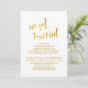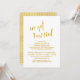 Aqui está uma escolha festiva para as suas necessidades de celebração postada. Sobre um fundo branco editável que você pode mudar para qualquer cor ou matiz que você preferir, eu coloquei um gráfico de tipografia que diz "nos casamos" com uma fonte moderna e funda. O gráfico foi embelezado com um efeito de ouro falso quente. Foi usada uma matiz de ouro correspondente para processar seus detalhes pessoais. Foi adicionado ao verso um padrão retrorreflector com o mesmo gráfico faux-gold usado no texto do cabeçalho. Um padrão alternativo que você pode escolher foi adicionado à configuração e deixado "desligado" se quiser tentar um tratamento alternativo em segundo plano. Use os campos modelo para adicionar seus próprios detalhes e clique para personalizar ainda mais se você quiser fazer modificações adicionais. Todas as camadas são desbloqueadas para permitir todo o controle de posicionamento e dimensionamento desejado. // 103 // Concebida por Melody Watson para Paper Muserie.