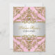 Convites Dourado e cor-de-rosa Damask Quinceanera Convide