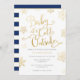 Faux Gold Foil Baby é Fold Outside Chá de fraldas Invitation, com marinho e ouro riscado.