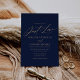 Convide amigos e família para compartilhar a alegria do seu casamento com este convite moderno, apresentando uma escrita elegante e tipografia de ouro em um marinho rico.
