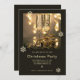 Convite de Natal moderno e luxo com dois copos de champanhe e flocos de neve. O fundo é brilhante