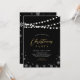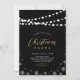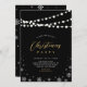 Comemore a temporada com este convite de festas modernas. Este design apresenta texto na moda dourado, flocos de neve com textura dourada e luzes de cordas. Você pode personalizar o texto, a fonte e as cores. Perfeito para uma festa de janto de férias com tema de ouro e cor preta ou festa de feriado empresarial.