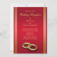 Um convite elegante e romântico, sofisticado e moderno de recepção decorativa para Casamentos com um belo fundo de vibrante rubi vermelho com borda dourada e um par de anéis de casamento na moda, um design de classe bonito para o seu dia especial. Nota, as faixas vermelhas no verso podem ser excluídas se desejado. Ideal para eventos de Primavera e Verão, mas pode ser usado para outono/outono e inverno. Todo o texto é totalmente personalizável para atender às suas necessidades, se você quiser ajudar a personalizar seu produto ou quiser combinar produtos, entre em contato comigo na minha loja e eu terei muito prazer em ajudá-lo.