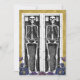 Convide familiares e amigos para uma festa de fantasia de Halloween. Dois desenhos vintage de esqueletos em caixões lado a lado. Dourado quadro colorido. Array elegante de floral de cor escura. Perfeito para festas de outubro.