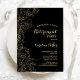 Convite de festas de aposentadoria Dourada preta. Design minimalista moderno com desenhos botânicos em destaque e letra de script de tipografia. Carteira feminina elegante perfeita para uma comemoração de na moda. Impressos convites Zazzle ou modelo de impressão digital instantânea para download.