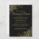 Este belo convite de Janto de ensaio apresenta um simples e elegante design de texto dourado sobre fundo preto com borras douradas e filigres florais nos cantos. Inclui informações sobre o próprio ensaio, bem como sobre a celebração do janto de ensaio. Elegante, clássico, sofisticado e chic.