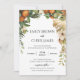 Bonito, elegante, moderno e boêmico convite para o seu casamento especial! A folhagem de folha de aquarela é borda em folhas verdes escuras e claras, com fruta de laranja natural e minúsculos quadros de flores no topo dos detalhes da celebração do casamento. Seus nomes são apresentados em fontes modernas no topo, e reverso da carta para revelar um padrão de folhagem de folha verde no verso. Personalize seus detalhes de casamento, data, local e muito mais na frente.