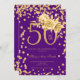 Convites Dourado Floral & Confetti 50º Aniversário Roxo