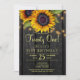 País russo 21º festa de aniversário de convite para na moda de modelo sobre fundo de madeira marrom-escura apresentando grandes buquês de girassol de ouro amarelo, cordas de luzes cintilantes e um falso roteiro de tipografia de ouro. +++++++++++++++++ Fácil de personalizar com seus detalhes! Você pode personalizá-lo alterando ainda mais as fontes e as cores das letras. ++++++++++++ O convite é adequado para jardins externos/jardins rústicos de quintal/churrasco de verão ou quedas de outono marco festas de aniversário