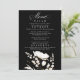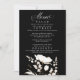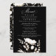 Flores douradas, desenhadas à mão, elegantes cartões de cardápio preto modernos para casamentos