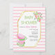 Polígono de folha de ouro, xícaras e flores, chá de flores, convite para o chá. Apresenta taquigramas cor-de-rosa e verde, flores e folhas. O texto está em um quadro branco com moldura de polígono de folha de ouro. Por trás dele há um padrão listrado com listras rosa e brancas.
