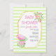 Polígono de folha de ouro, xícaras e flores, chá de flores, convite para o chá. Apresenta taquigramas cor-de-rosa e verde, flores e folhas. O texto está em um quadro branco com moldura de polígono de folha de ouro. Por trás dele há um padrão listrado com listras verdes e brancas claras.