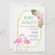 Convites Dourado polígono, flamingos chá de fraldas