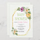 Convites Dourado polígono, flores bolinhas chá de fraldas f