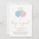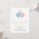 Celebre um dia especial para seu amado com este belo convite para o chá de fraldas! Este design apresenta a tipografia do ouro na moda "Oh Baby" com balões e confetti em cor rosa, azul claro e azul dourado. Combine seu convite com suas decorações de chá de fraldas. O convite perfeito para um gênero revela chá de fraldas ou aspersão de bebê. Se precisar de uma cor ou design personalizada, entre em contato comigo por e-mail (barabomdesign@gmail.com).