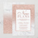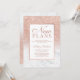 Anuncie o adiamento do seu casamento, evento ou aniversário e novos planos com este moderno, bonito chic e elegante chuveiro brilhante dourado rosa falso com fundo de mármore branco.