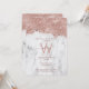 Um design cor-de-rosa dourado rosa com brilho feminino em mármore branco com monograma personalizado e nome. Presente ideal para quem ama brilho e glitter. O design de convite de aniversário glamoroso cor-de-rosa perfeito para qualquer idade. Por favor, veja nossa coleção para decoração e brindes de festa correspondentes.