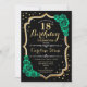 18º Convite de aniversário. Elegante design verde esmeralda floral com ouro brilhante falso, rosas e fontes de script. Perfeito para uma comemoração de dia das mulheres na moda. Pode ser personalizado para qualquer idade! Impressos convites Zazzle ou modelo de impressão digital instantânea para download.