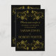 Este design tem uma Flor de Folha de Ouro Faux Filigree e caule de Vinha em fundo preto. Junto com a letra de ouro romântica e o guião que esta design é perfeita para um casamento elegante e moderno. Este simples convite de casamento minimalista tem os nomes noivas e noivos na frente com Data, Hora e Local no verso. É na moda, chique e romântico e será perfeito para um casamento em qualquer época do ano, seja no verão, inverno, primavera ou outono/outono. PERSONALIZAR editando o texto nas caixas de texto. Clique/Pressione "Personalizar este Modelo" para inserir o nome e os detalhes escolhidos. Para alterar o tamanho da fonte ou a cor, clique/toque em "clique para personalizar mais". Esta COLEÇÃO DE CASAMENTO hospeda vários artigos de papelaria e acessórios de casamento correspondentes, e também o design pode ser transferido para muitos outros produtos no Zazzle. Se precisar de outros itens correspondentes, por favor, solte-me uma mensagem aqui.