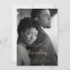 Este elegante convite de casamento apresenta um guião manuscrito de ouro moderno e falso e a sua fotografia pessoal favorita para um olhar simples mas glamouroso. A parte de trás do convite é uma cor preta rica.