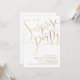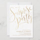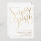 O convite de festas surpreendente moderno apresenta um roteiro surpresa de na moda caligrafia e reluz na cor falsa da folha de ouro, um convite para adultos surpreendentes e simples, de excelente, para qualquer idade. A cor branca do fundo pode ser alterada para qualquer cor de sua escolha.