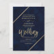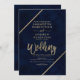 Dourada tipografia no marinho azul-aquarela e no falso casamento geométrico em listras de ouro, perfeito para casamento elegante e chic,