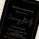 Elegante Dourado Traje Fronteira de Fronteira Negra de Casamento à Noite Negra Recepção do Partido. Disponível digitalmente e impresso. Clássica elegância em preto e ouro. Um estilo manuscrito para o Partido da Noite e o resto do texto que você pode personalizar facilmente. As cores do texto e do plano de fundo podem ser alteradas para qualquer opção ou sua escolha por meio da opção personalizar mais.